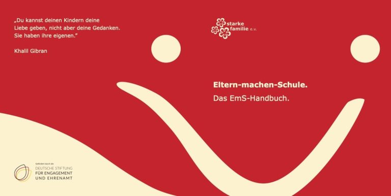 starke familie e.V. bietet Ihnen kostenlos (!) unser Elterntraining EmS – Eltern-machen-Schule an. Insgesamt sind es ca. 8 Stunden, die Sie sich je nach Ihren zeitlichen Möglichkeiten ansehen können.